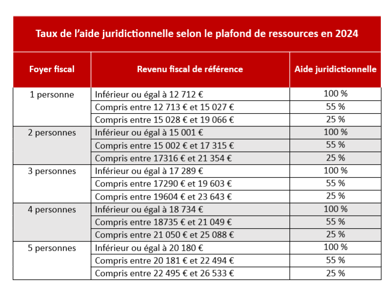 Taux de l'Aide Juridictionnelle selon le plafond de ressources en 2024